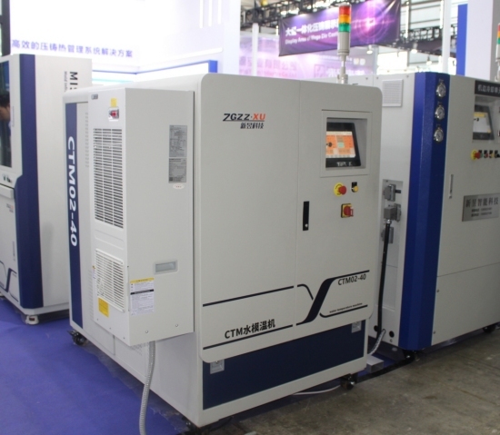 CTM大型高溫水路控制系統(tǒng) 據(jù)介紹,新昱科技將原來的數(shù)十臺水溫機(jī)分別控制,改為集中溫控并分為低溫區(qū)5-35℃、中溫區(qū)50-120℃、高溫區(qū)120-160℃三大溫區(qū),同時實現(xiàn)控制系統(tǒng)集成,集中于一臺CTM中央水路控制系統(tǒng)。CTM采用分體式結(jié)構(gòu)設(shè)計,控制箱直接放置在模具旁,并且可實現(xiàn)間歇性供水,反應(yīng)速度快,管理集中輸送,數(shù)量少,方便做管路保溫,最大化地減少管路熱量損失。另外, CTM的升降溫效率是普通水溫機(jī)的2倍。