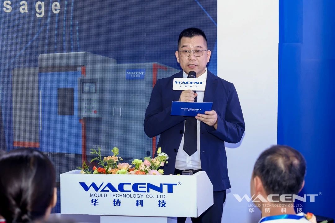 華鑄科技總經(jīng)理李燦明先生致辭 在發(fā)布會上,華鑄科技總經(jīng)理李燦明先生詳細(xì)闡述了這款壓鑄機(jī)的創(chuàng)新之處。他介紹道,該設(shè)備采用了從分型面直接進(jìn)料的獨(dú)特結(jié)構(gòu)設(shè)計,這一革命性設(shè)計將進(jìn)料口尺寸縮減至極致,從而實(shí)現(xiàn)了熱室壓鑄生產(chǎn)節(jié)拍的飛躍。生產(chǎn)出的壓鑄件不僅無料咀、無披鋒,而且生產(chǎn)效率與產(chǎn)品品質(zhì)均達(dá)到了新高度。更重要的是,由于毛坯件物料消耗的減少,鋅合金材料成本得以顯著降低,為企業(yè)帶來了實(shí)實(shí)在在的經(jīng)濟(jì)效益。