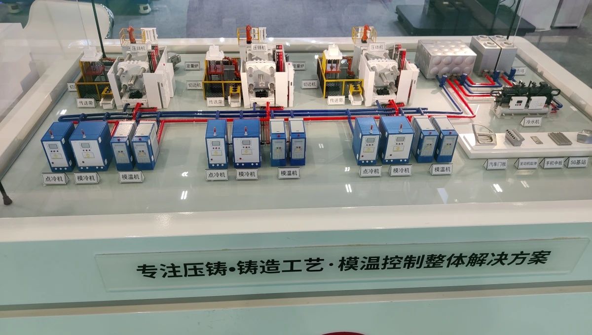 奧德機(jī)械壓鑄專用200℃高溫水溫機(jī) 壓鑄行業(yè)作為奧德機(jī)械主推的五大應(yīng)用領(lǐng)域之一。奧德機(jī)械在壓鑄行業(yè)擁有大量的應(yīng)用案例和豐富的經(jīng)驗(yàn)積累。展會(huì)期間,奧德機(jī)械重點(diǎn)推介了其在大型一體化壓鑄溫控系統(tǒng)及一站式整體解決方案。同時(shí),一款大型一體化壓鑄(汽車)后地板的亮相也吸引了眾多觀眾的駐足圍觀。奧德機(jī)械自2019年推出大型一體化壓鑄溫控系統(tǒng)以來,憑借深厚的理論技術(shù)積淀和豐富的實(shí)戰(zhàn)經(jīng)驗(yàn),在設(shè)備選型、智能控制、寬幅高精度溫控以及節(jié)能降本等方面均表現(xiàn)出色,贏得了業(yè)界的廣泛認(rèn)可。 據(jù)悉,奧德機(jī)械的大型壓鑄一體化溫控系統(tǒng),憑借其20℃至320℃的大寬幅可調(diào)溫區(qū),為模具溫度平衡提供了穩(wěn)定且可控的溫源輸出。該系統(tǒng)在節(jié)能效果、溫控范圍、溫控操作集成度以及降低對(duì)公用工程要求等方面均實(shí)現(xiàn)了顯著提升,尤其是通過降低單個(gè)壓鑄島溫控系統(tǒng)的裝機(jī)功率,有力推動(dòng)了大型結(jié)構(gòu)件一體化壓鑄的發(fā)展進(jìn)程。