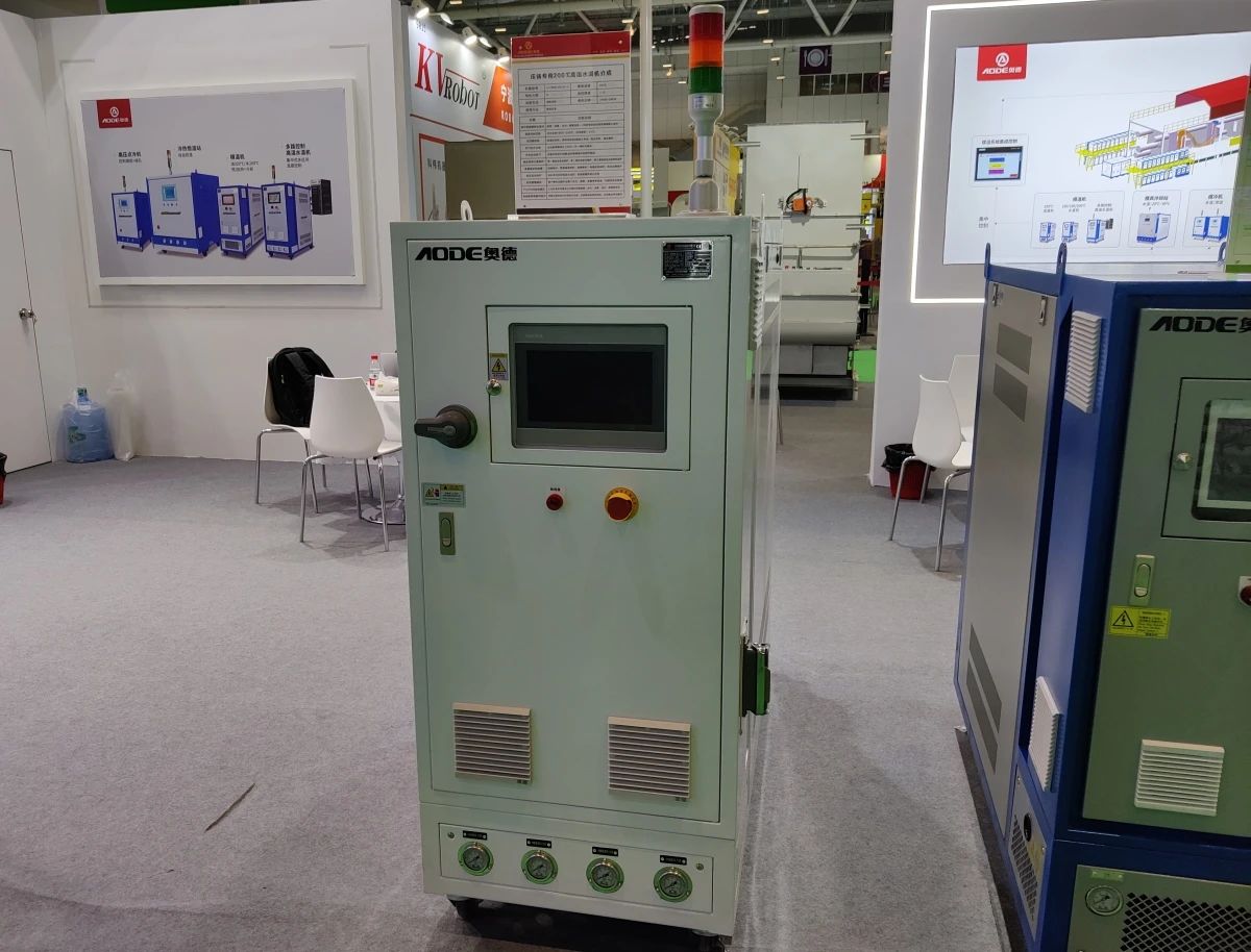 奧德機(jī)械壓鑄專用油溫機(jī) 奧德機(jī)械的高壓點(diǎn)冷機(jī)則具備高壓噴射冷卻、單點(diǎn)/路可控、斷芯報(bào)警等功能,高效冷卻,內(nèi)管管徑≤φ2.5,有效控制凝固和縮孔,減少噴涂時(shí)間,防止型芯銷燒損,提升生產(chǎn)效率。另外,展示的壓鑄專用200℃高溫水溫機(jī),最高溫度達(dá)200°C,控制精度±1°C,集成壓力、流量監(jiān)控及遠(yuǎn)程物聯(lián)功能,滿足工業(yè)4.0物聯(lián)數(shù)據(jù)化生產(chǎn)需求。
