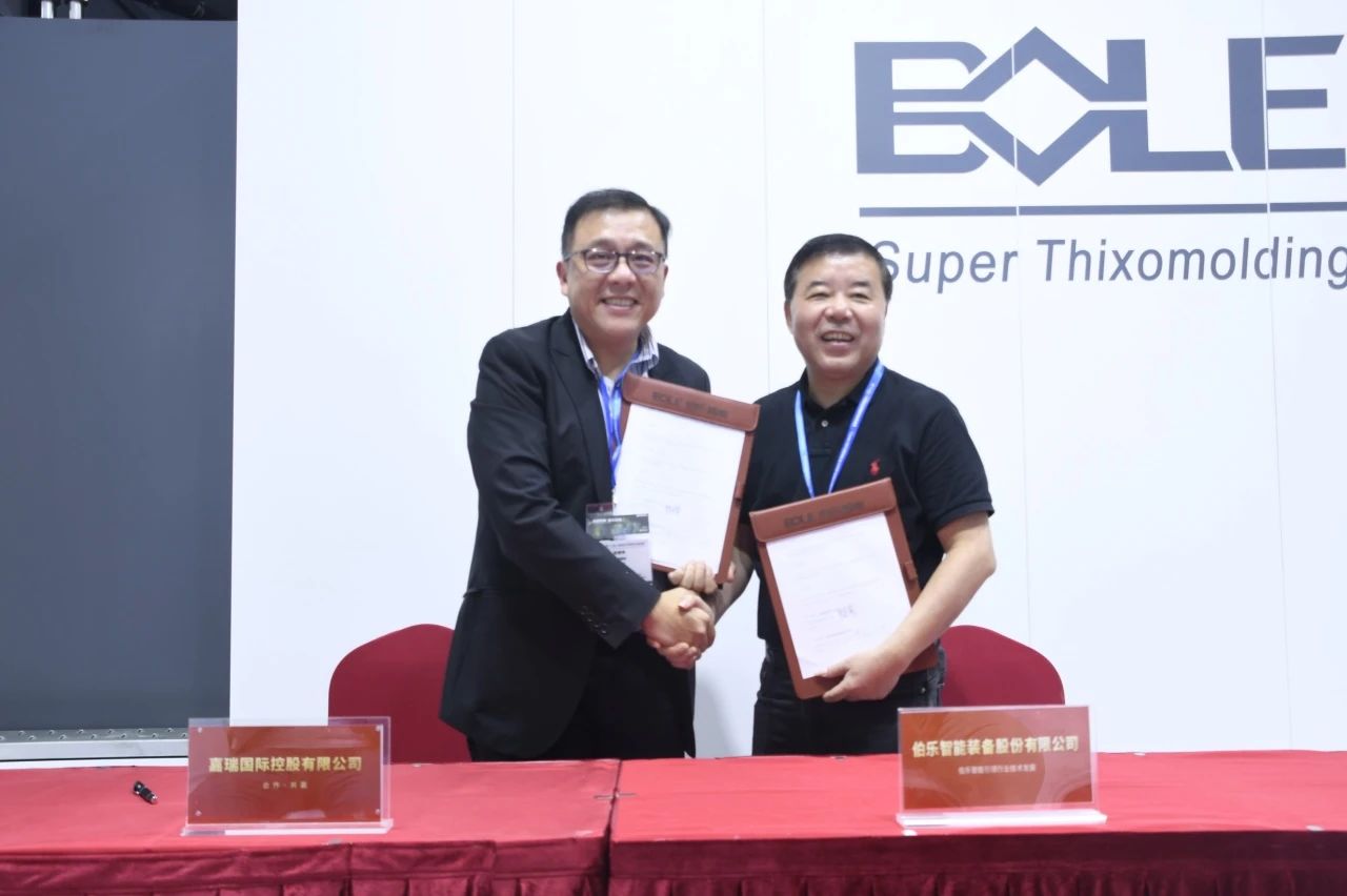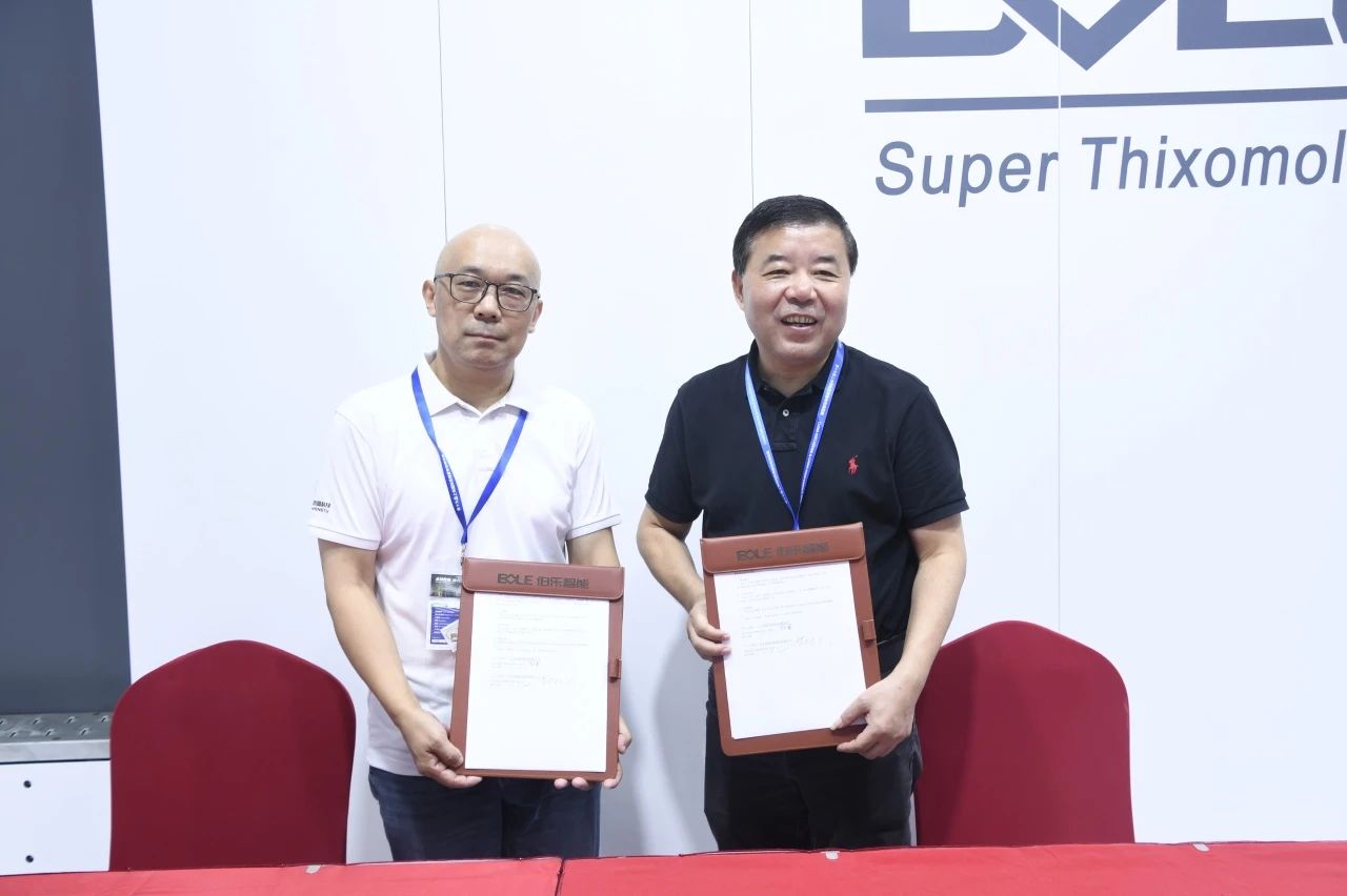 展會盛況 工藝革新:采用半固態觸變成型技術,將鎂合金顆粒加熱至半固態后直接注射,無需熔爐與保護氣體,從源頭消除氫脆、氧化夾雜等缺陷,產品良率從傳統工藝的75%提升至95%,單件生產周期縮短40%。 能效躍升:通過伺服電機與液壓系統深度耦合設計,配以專利的特殊軟件算法設備能耗較傳統壓鑄降低35%,單臺年節電量相當于減少碳排放800噸,契合歐盟碳關稅(CBAM)等國際綠色貿易壁壘要求。 應用拓展:伯樂智能成功試制新能源汽車鎂合金電機殼體,實現鎂合金在高壓電機核心部件的首次規模化應用,較鋁合金減重35%、散熱效率提升20%,為800V平臺熱管理提供關鍵解決方案;同步突破鎂合金輪轂等部件的半固態成型工藝,形成覆蓋動力、底盤系統的全場景輕量化技術矩陣。 02 戰略簽約:五大巨頭共筑“鎂基價值鏈”