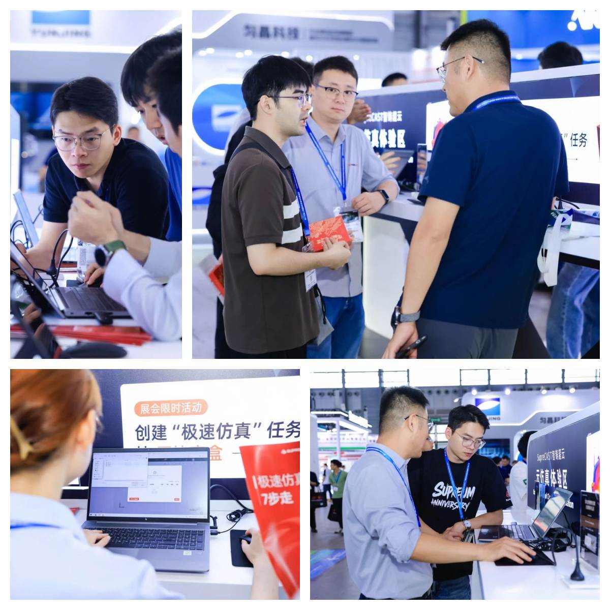 活動開始,適創科技展位便被熱情的觀眾圍得水泄不通,報名參與者絡繹不絕,包括工程師、學生、行業專家、技術小白等各類人群。 他們在工程師的專業指導下,現場動手體驗國產CAE軟件的輕快計算,人均2分鐘以內即可提交一個模流任務,三天挑戰最快速度僅用時1分18秒!
