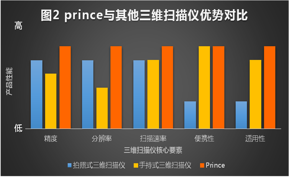 PRINCE應(yīng)用展示 PRINCE手持式雙色激光三維掃描儀,其掃描速度320000次測(cè)量/秒,掃描精度最高可達(dá)0.03mm,體積精度0.02+0.08mm/m,Tango-S的7束紅色激光基礎(chǔ)上增加5束藍(lán)色平行線激光,雙基準(zhǔn)距,雙景深。PRINCE功能完全覆蓋了現(xiàn)有HSCAN及市場(chǎng)上其他手持式三維掃描儀,同時(shí)額外具備了極致細(xì)節(jié)掃描能力。