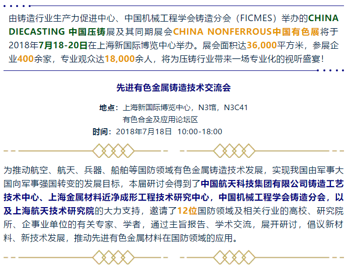 發(fā)表于2018/7/7 21:39:56 中國壓鑄展有色金屬鑄造技術(shù)交流會(huì)