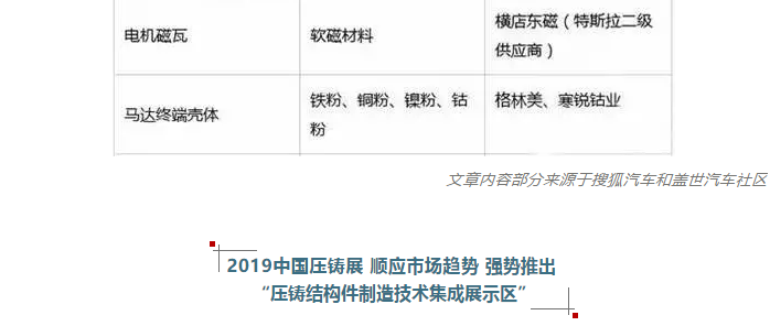 到目前為止,盡可能多地采用輕量化部件,會是電動汽車達到理想行駛里程的關(guān)鍵。因此,輕量化這一課題以及利用新材料開發(fā)新的輕量化概念將成為汽車工業(yè)中越來越重要的分支。 不管是電動汽車,還是混合動力汽車都必須變得更輕,以補償電池所增加的重量,并延長行使里程。除了電動汽車不再需要的部件外,壓鑄工藝還提供了作為鑄造工藝滿足輕量化這一趨勢要求的可能性。由于可以實現(xiàn)極小的壁厚,通過部分復雜冷卻流道實現(xiàn)電池調(diào)溫的薄壁電池外殼和支架,顯示了鑄件的未來潛力。鑄造工藝為部件輕質(zhì)化設(shè)計提供了多種可能性。它允許高度的設(shè)計自由度,以便將合適的材料放置在合適的位置,并有助于將多個功能集成到一個部件中。 特斯拉最新供應商名單匯總