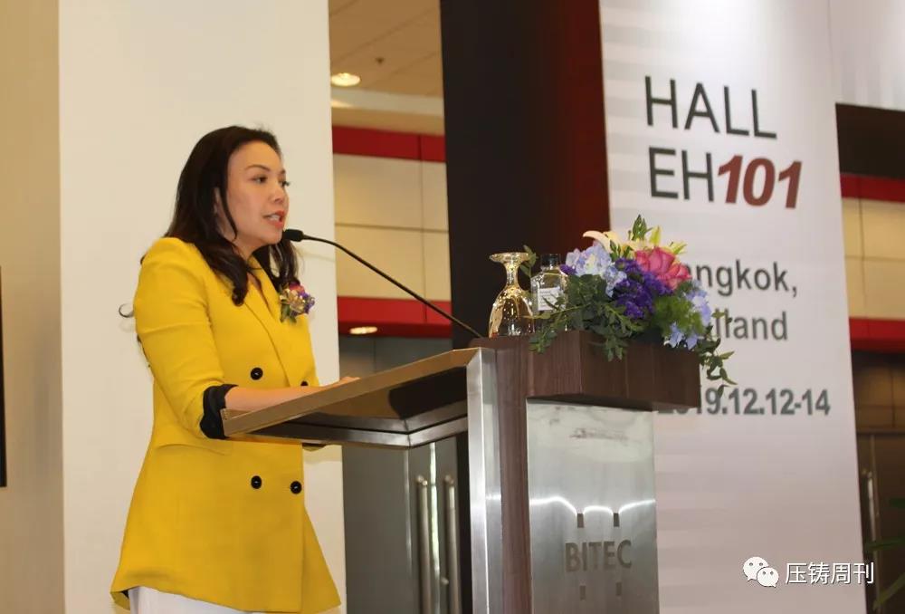 泰國會展局展覽部總監(jiān) Kanokporn Damrongkul 女士(Kelly) 致辭 本次展會參展企業(yè)有鑄造、壓鑄設(shè)備、熔煉、熱處理、工業(yè)爐、冶金設(shè)備、模具、表面處理、周邊設(shè)備等多個行業(yè)。其中,壓鑄、鑄造設(shè)備企業(yè)包括布勒(中國)機械制造有限公司、意特佩雷斯壓鑄設(shè)備(上海)有限公司、力勁機械國際有限公司、寧波宜科信機械有限公司、尚富工業(yè)股份有限公司、IDRA Srl等。