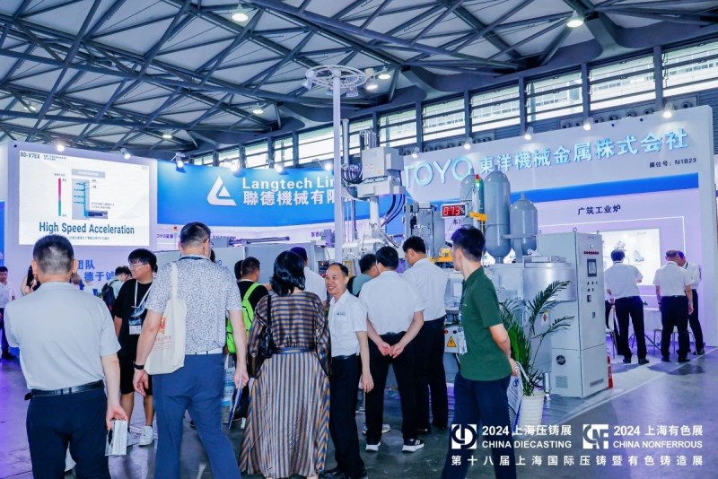 ![]() 2024年7月10-12日,第十八屆上海國際壓鑄暨有色鑄造展在上海新國際博覽中心成功舉辦。本屆展會以“新能源汽車發(fā)展構建壓鑄全球化新格局”為主題,展出面積3.69萬平方米,吸引了470余家參展單位,來自全球60+國家及地區(qū)的有色、壓鑄行業(yè)及相關應用領域專業(yè)觀眾蒞臨參觀。 聯(lián)德機械有限公司作為東洋TOYO品牌壓鑄機在中國的主要代理商,與東洋機械金屬株式會社聯(lián)合參加了“2024上海國際壓鑄展”,并在現(xiàn)場展示了一臺東洋TOYO最新款的BD-500V7EX冷室壓鑄機。 據(jù)了解,V系列是東洋TOYO的主力機型,是一款廣受好評的壓鑄機,凝聚了長達半個世紀的技術積淀。而BD-V7EX則是V系列中的高端機型,其高速加速度高達100G,并配置了全新的控制系統(tǒng),是一款能夠應對近年來多樣化發(fā)展的壓鑄方式以及各種產品的鑄造要求的高性能壓鑄機。