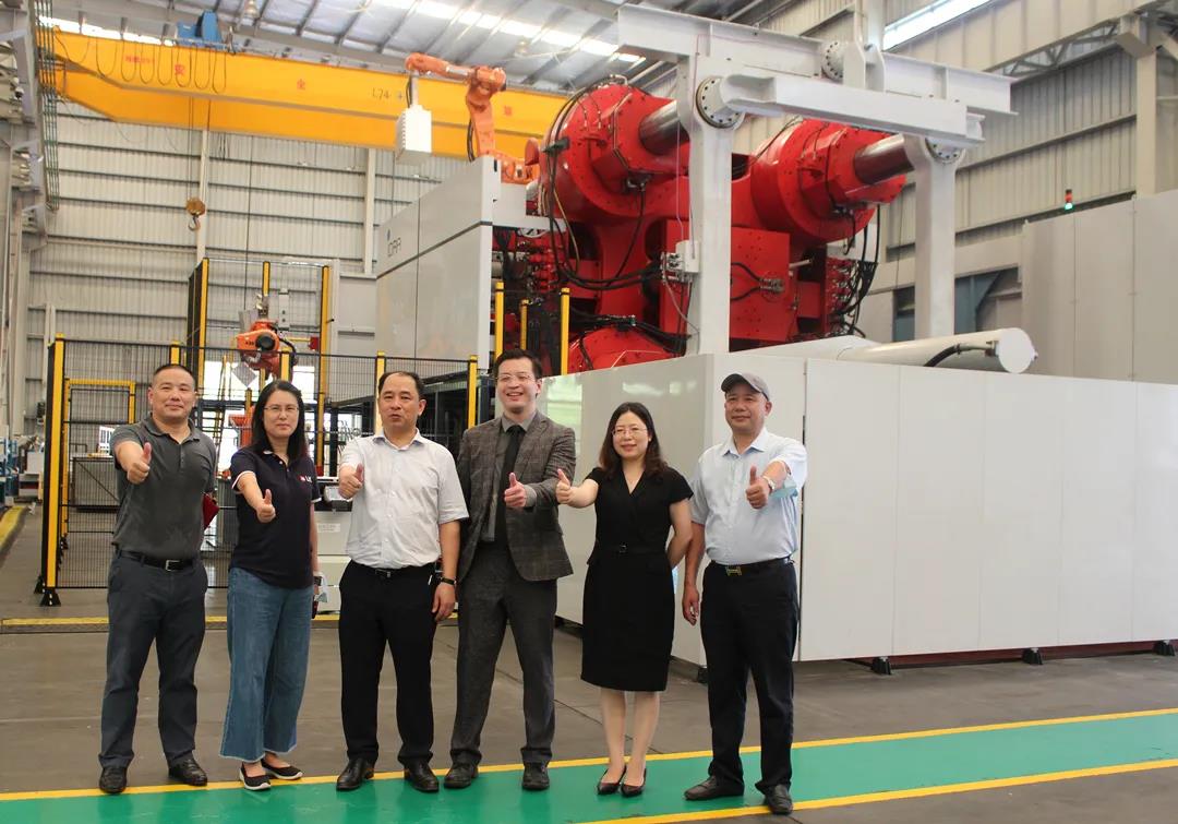 文燦集團(tuán)、力勁集團(tuán)高層在驗收儀式上合影 今年5月,文燦集團(tuán)與力勁集團(tuán)在上海簽署戰(zhàn)略合作協(xié)議,向后者采購7套合模力2800T-6000T的超大型智能壓鑄單元,包括2800T、3500T壓鑄單元各一套、4500T壓鑄單元三套,6000T壓鑄單元兩套。均為力勁集團(tuán)旗下意德拉IDRA品牌的X-PRESS系列兩模板壓鑄機(jī)。截止目前,2800T壓鑄單元已安裝調(diào)試完畢,即將發(fā)往文燦集團(tuán)南通工廠;4500T、6000T壓鑄單元已經(jīng)完成總裝。