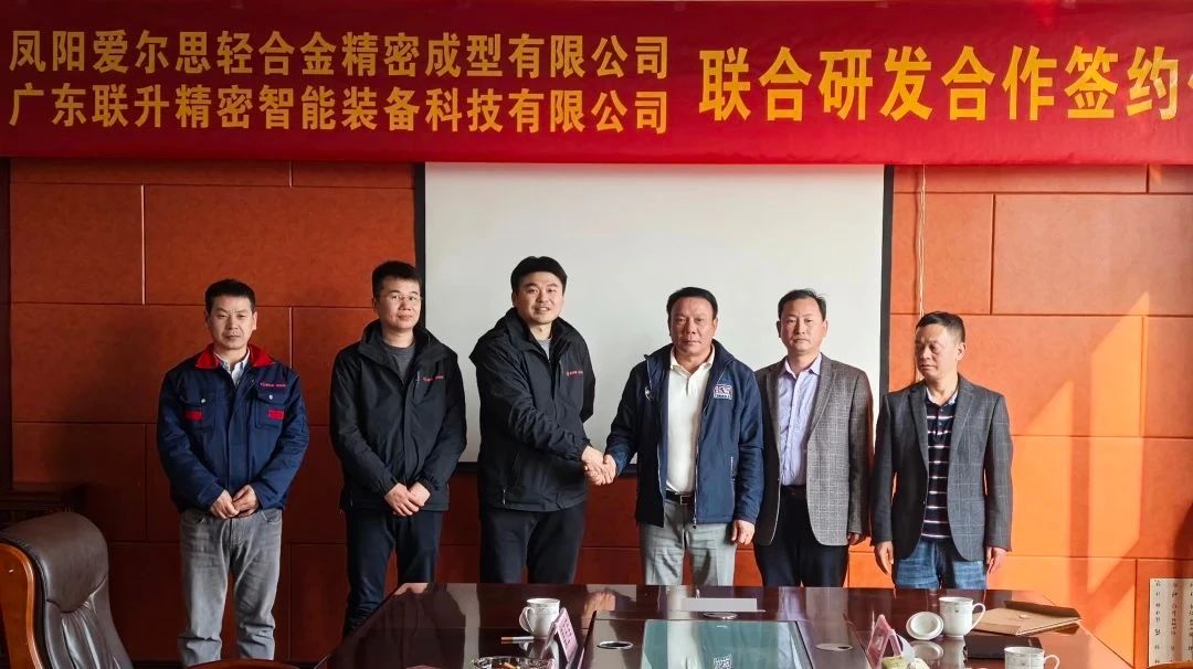 圖源:布勒集團(tuán) 2025年2月,布勒集團(tuán)在Seojin System越南工廠完成了首臺(tái)鎖模力達(dá)92,000千牛的先進(jìn)大型壓鑄機(jī)的安裝。布勒在Seojin System越南工廠的壓鑄單元是東南亞首套,也是目前該地區(qū)唯一的一套。目前正在安裝第二臺(tái)機(jī)器,這將進(jìn)一步擴(kuò)大Seojin System的生產(chǎn)能力,每臺(tái)機(jī)器每年可為電動(dòng)汽車(如電池托盤和后底板)生產(chǎn)多達(dá)200,000個(gè)零部件。 鳳陽(yáng)愛(ài)爾思、聯(lián)升精密將聯(lián)合開(kāi)發(fā)鎂合金半固態(tài)擠壓鑄造工藝 3月20日,廣東聯(lián)升精密智能裝備科技有限公司與鳳陽(yáng)愛(ài)爾思輕合金精密成型有限公司在安徽鳳陽(yáng)隆重舉行“鎂合金半固態(tài)擠壓鑄造”工藝聯(lián)合開(kāi)發(fā)”簽約儀式。此次合作,雙方將整合資源,共同攻克鎂合金半固態(tài)擠壓鑄造工藝的技術(shù)難題,致力于開(kāi)發(fā)高性能、低成本、綠色環(huán)保的鎂合金零部件。