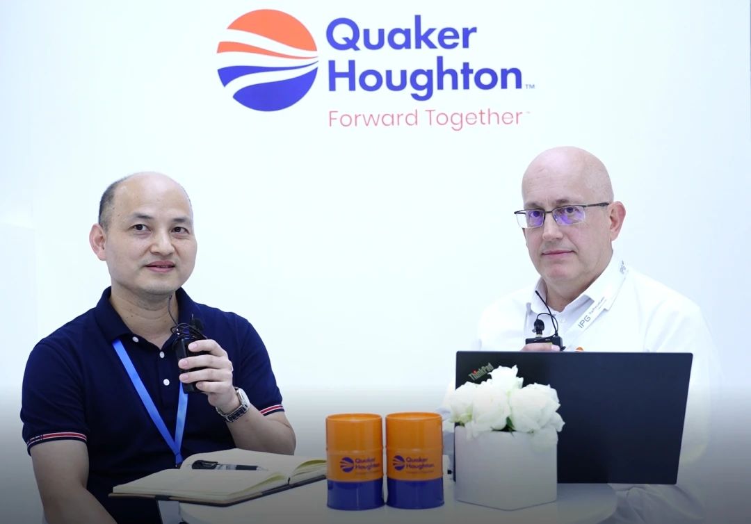 奎克好富頓全球先進(jìn)方案-浸滲及壓鑄負(fù)責(zé)人Mr. MarkCross(右)接受《壓鑄周刊》記者專訪 《壓鑄周刊》 請您簡單介紹一下奎克好富頓公司。 Mr. MarkCross:奎克好富頓是一家包括壓鑄在內(nèi)的所有工藝潤滑技術(shù)領(lǐng)域的全球領(lǐng)導(dǎo)者。我們非常注重研發(fā),為客戶提供新型、創(chuàng)新和可持續(xù)的解決方案。我們在包括中國在內(nèi)的全球所有市場都擁有強(qiáng)大的業(yè)務(wù)覆蓋,并已在中國耕耘多年。 《壓鑄周刊》 請問奎克好富頓壓鑄解決方案有包含哪些?貴司這方面的產(chǎn)品有哪些優(yōu)勢和亮點(diǎn)? Mr. MarkCross:奎克好富頓為壓鑄提供智能解決方案,我們稱之為“Diecast iQ”。這包括卓越的壓鑄脫模和沖頭潤滑劑技術(shù),從傳統(tǒng)的水基產(chǎn)品到我們市場領(lǐng)先的靜電壓鑄脫模劑,以及完整的交鑰匙設(shè)備供應(yīng)和集成——從簡單的水基脫模劑混配器到包括一體化壓鑄系統(tǒng)的噴頭在內(nèi)的潤滑劑應(yīng)用系統(tǒng)。 我們與競品的不同之處在于我們提供的潤滑劑技術(shù)范圍,以及潤滑劑應(yīng)用設(shè)備的設(shè)計(jì)、制造和供應(yīng)。我們與客戶密切合作,確保他們獲得合適的潤滑劑系統(tǒng),并盡可能降低總生產(chǎn)成本,并幫助他們將工藝升級(jí)到最新技術(shù)。 此外,我們還為客戶提供咨詢服務(wù),評(píng)估他們當(dāng)前的壓鑄工藝,幫助他們確定在哪些方面可以采用更具可持續(xù)性的產(chǎn)品和流程。這可以是MQL微量潤滑解決方案,甚至是靜電噴涂系統(tǒng)。作為解決方案提供商,我們可以成為客戶的單一聯(lián)系人,為他們提供和整合任何必要的設(shè)備,以升級(jí)他們的工藝并實(shí)施新的解決方案。在這些方面與現(xiàn)有的壓鑄潤滑劑供應(yīng)商有很大不同。