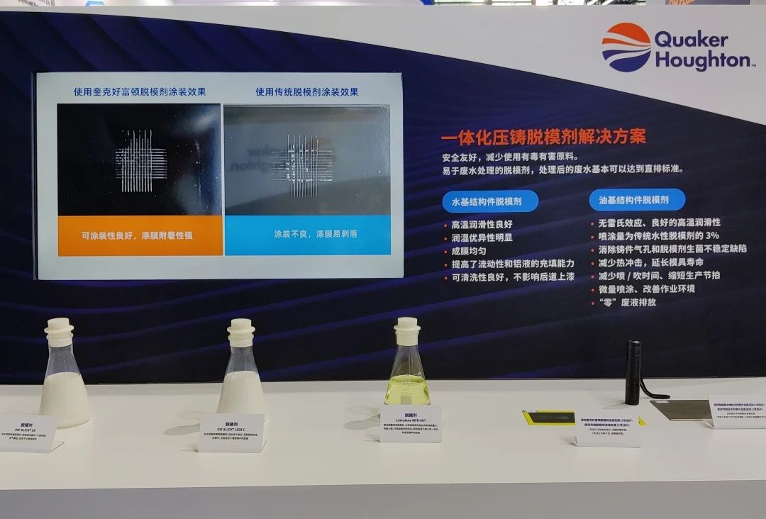 公司技術(shù)人員為來訪人士詳細(xì)介紹產(chǎn)品 《壓鑄周刊》 請您介紹一下奎克好富頓壓鑄解決方案在客戶現(xiàn)場的應(yīng)用情況? Mr. MarkCross:目前,我們主要專注于一體化壓鑄工藝,提供交鑰匙的靜電壓鑄脫模劑解決方案。我們與客戶討論確定他們的需求,然后設(shè)計(jì)和安裝全套噴涂系統(tǒng),并提供后續(xù)支持以優(yōu)化工藝。 在這些新的大型壓鑄工藝之外,我們采用智能聚合物技術(shù)的DIE SLICK系列脫模劑為客戶提供了更高的潤滑性能,尤其是與我們的FLUDICAST設(shè)備系列配合使用時(shí)。