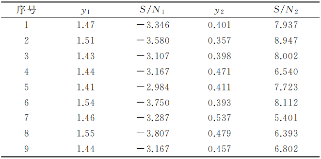 表3 田口正交表及結果統計 對于卷氣率、縮孔率這兩個響應目標而言,均符合田口試驗質量特性中的望小特性,故信噪比S/N的計算公式為: