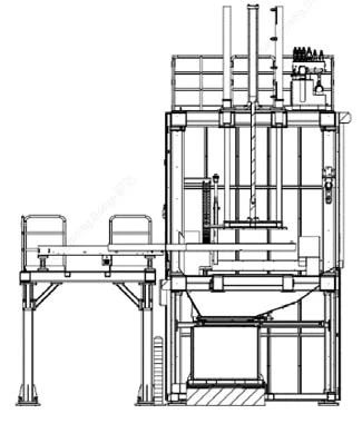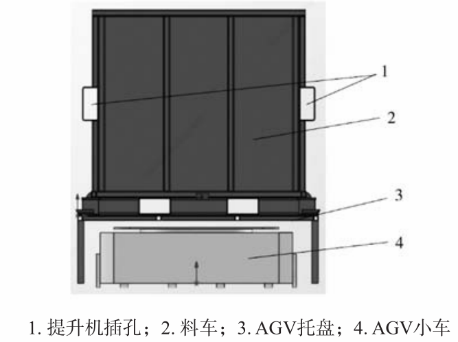 圖5 熔化保溫爐示意圖 圖6所示,熔化爐上料采用AGV的方式,主要構(gòu)成有AGV小車,托盤和料車,料車底部帶有叉車孔,方便叉車上下料,側(cè)面的叉車孔和熔化爐投料提升機(jī)鏈接,可以提升料車,實(shí)現(xiàn)無(wú)人化操作。