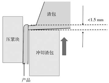 圖10 去渣包原理圖 2.5 等離子切割站 圖11為等離子切割站示意圖,采用倒掛機(jī)器人搬運(yùn)等離子切割槍頭,對(duì)產(chǎn)品的澆道進(jìn)行切割,澆道去除后,掉入AGV小車中,去渣包AGV小車,等離子切割小車及熔爐的小車規(guī)格一致,可以實(shí)現(xiàn)去渣包料餅直接通過(guò)AGV進(jìn)行投料到熔爐中,實(shí)現(xiàn)物料循環(huán),不需要人工轉(zhuǎn)運(yùn)。如圖5所示。圖12為切割澆道的分界線。由于等離子切割在切割過(guò)程中,本體必須連續(xù),因此,模具設(shè)計(jì)時(shí),需要把澆道前端鏈接在一起,這樣既保證了不斷弧,又不切傷產(chǎn)品。