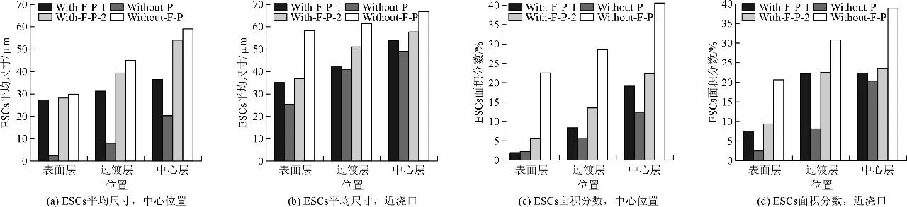 圖8 4種工藝制備的試樣ESCs面積分?jǐn)?shù)和ESCs平均尺寸