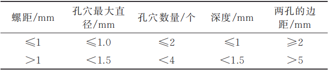 表2 產(chǎn)品螺紋孔空穴缺陷標(biāo)準(zhǔn)