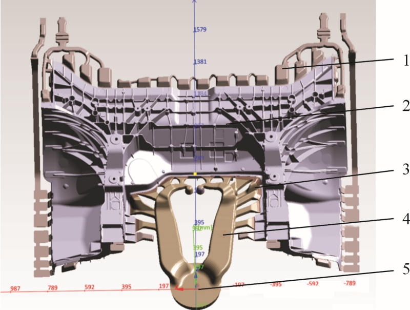 ![]() 原標(biāo)題:廣東鴻圖:一體化前艙壓鑄項(xiàng)目開(kāi)發(fā)及應(yīng)用案例介紹 一體化壓鑄是合并了原傳統(tǒng)汽車制造的沖壓和焊接流程,使用大合模力壓鑄設(shè)備將多個(gè)鋁合金零部件高度集成,一次壓鑄成形單個(gè)或少數(shù)幾個(gè)大型鋁合金壓鑄件。該技術(shù)具有多個(gè)優(yōu)勢(shì):①降低生產(chǎn)成本,從而降低整車的價(jià)格;②采用單一的鋁合金材料可以有效的汽車輕量化,提高汽車的續(xù)航能力;③一體化壓鑄車身可以大量減少焊點(diǎn)數(shù)量,提升整車的扭轉(zhuǎn)剛度,提高汽車的安全性。隨著在汽車、航空航天和電子類等領(lǐng)域的發(fā)展,市場(chǎng)對(duì)一體化壓鑄的需求不斷增大,同時(shí)在技術(shù)上的不斷創(chuàng)新和環(huán)保要求不斷提高等因素,一體化壓鑄將在更多的領(lǐng)域應(yīng)用,擁有較好的發(fā)展前景。有優(yōu)勢(shì)的同時(shí)必然存在制造的難度,產(chǎn)品尺寸超越了過(guò)往所有傳統(tǒng)汽車零部件的尺寸,一體化壓鑄對(duì)壓鑄技術(shù)、設(shè)備精度和質(zhì)量管控有著更高的要求。 圖文結(jié)果 開(kāi)發(fā)的汽車一體化前艙零件應(yīng)用于某型汽車車架前艙總成,見(jiàn)圖1。該零件(圖2)輪廓尺寸為1 600 mm×940 mm×700 mm,壓鑄件質(zhì)量為53 kg,平均壁厚為4.6 mm,鑄件材質(zhì)采用AlSi7系免熱處理合金;產(chǎn)品本體取樣性能要求:抗拉強(qiáng)度≥215 MPa,屈服強(qiáng)度≥115 MPa,伸長(zhǎng)率≥9%,折彎角≥20°;產(chǎn)品內(nèi)部質(zhì)量要求見(jiàn)表1,連接面加工后在25 mm×25 mm區(qū)域內(nèi)氣泡直徑≤1 mm,且該區(qū)域內(nèi)所有氣泡的直徑之和<6 mm,高度≤0.5 mm。螺紋孔缺陷標(biāo)準(zhǔn)見(jiàn)表2,其他區(qū)域符合ASTM冷隔等級(jí)Ⅱ級(jí);產(chǎn)品全尺寸要求合格率≥97%,產(chǎn)品非加工安裝面面輪廓度要求精度最高為1.6 mm,最低為3.0 mm,對(duì)壓鑄變形控制要求較高。