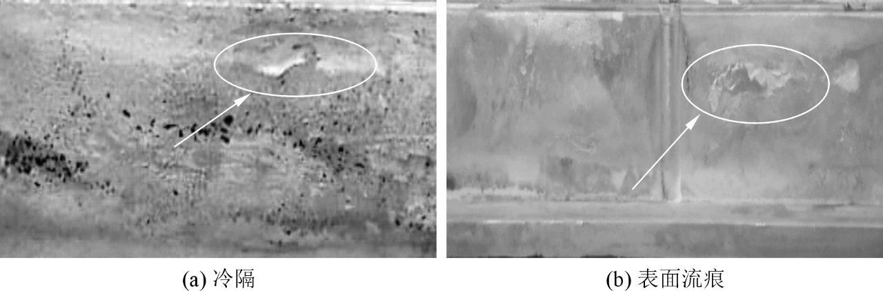 真空壓鑄件見(jiàn)圖3。觀察可知,3組散熱器真空壓鑄件外形完整,沒(méi)有出現(xiàn)充不滿的現(xiàn)象,外觀幾乎無(wú)差別。仔細(xì)觀察發(fā)現(xiàn),L1部分散熱片產(chǎn)生了冷隔,見(jiàn)圖4,因此當(dāng)產(chǎn)品受靜載或循環(huán)應(yīng)力的時(shí)候很容易出現(xiàn)裂紋甚至斷裂,嚴(yán)重影響產(chǎn)品的使用安全性,另外還出現(xiàn)了表面流痕,這是由于快壓射速度低,首先進(jìn)入壓鑄模具型腔內(nèi)的金屬液形成較薄而不完整的金屬層后,被后續(xù)的金屬液覆蓋而留下痕跡,從而影響壓鑄件的表面質(zhì)量,見(jiàn)圖4b。L2散熱片則沒(méi)有發(fā)現(xiàn)明顯的冷隔及表面流痕缺陷;L3由于快壓射速度較高,金屬液快速填充型腔時(shí),對(duì)其造成很大的沖擊,易產(chǎn)生飛邊,增加了產(chǎn)品機(jī)加工的成本與時(shí)間,造成材料浪費(fèi),同時(shí)縮短模具壽命。