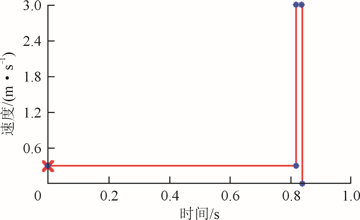 圖6 增設隨形冷卻水道方案 首先用UG建立簡易的活塞、壓室和模具,將其連同冷卻水道(傳統冷卻直道和隨形冷卻水道)和水泵壓鑄件(水泵座+流道+料餅+溢流槽)一塊裝配,然后在模流軟件界面進行面網格和體網格劃分。設置鑄件面網格尺寸為1mm,冷卻水道面網格尺寸為1.5mm,活塞、壓室和模具面網格尺寸為4mm。帶有傳統冷卻直道的有限元模型面網格數量為127076,體網格數量約為245萬,帶有隨形冷卻水道的有限元模型面網格數量為129052,體網格數量約為233萬。有限元模型見圖7。模擬的工藝參數包括澆注溫度為640℃,模具預熱溫度為240℃,活塞快壓射速度為3 m/s,慢壓射速度為0.3m/s,壓室高度為300 mm,可以得到快壓射時間為0.018s,慢壓射時間為0.818s。其活塞運動速度與時間曲線見圖8。
