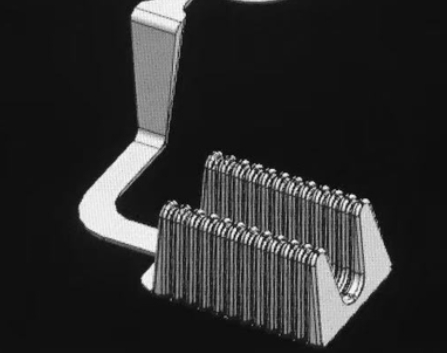 2.上述填充順序的澆口設計:要嚴格控制上述的填充順序和梯度,重點是要對每個內澆口尤其是前兩個內澆口的入料導向,鋁液流動是往背壓小的區域優先填充的,內澆口厚度小,所以通常大部分鋁液會優先充滿主澆道然后再往內澆口逐個填充,所以導向設計首先要克服背壓這個問題; 原理其實也很簡單,就是利用圓周運動的離心力,當高速圓周運動的物體脫離束縛后是沿著脫離點的圓周切線方向運動的;所以此類澆排的核心就是利用這一原理對前幾個澆口進行導向設計,如圖所示: