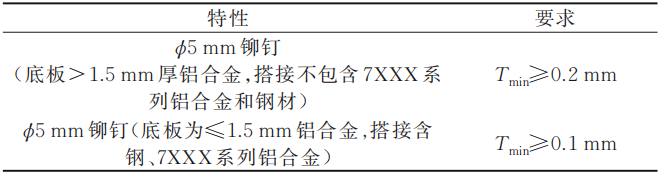 表2 剩余材料最小厚度質量指標