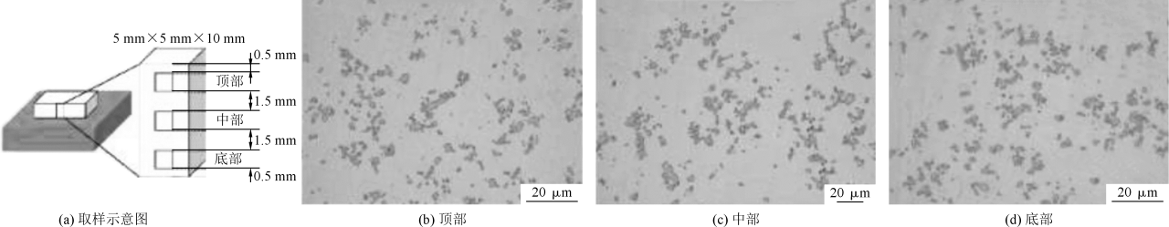 圖11 底部循環(huán)水冷Zn-0.3Fe合金沿高度方向不同部位的SEM組織圖