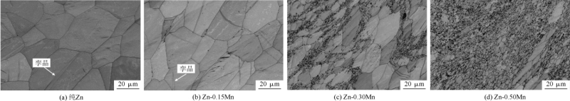 圖9 純Zn和鑄態(tài)Zn-1Mg合金的顯微組織