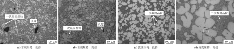 圖14 流變擠壓鑄造試樣在不同壓力下的顯微組織