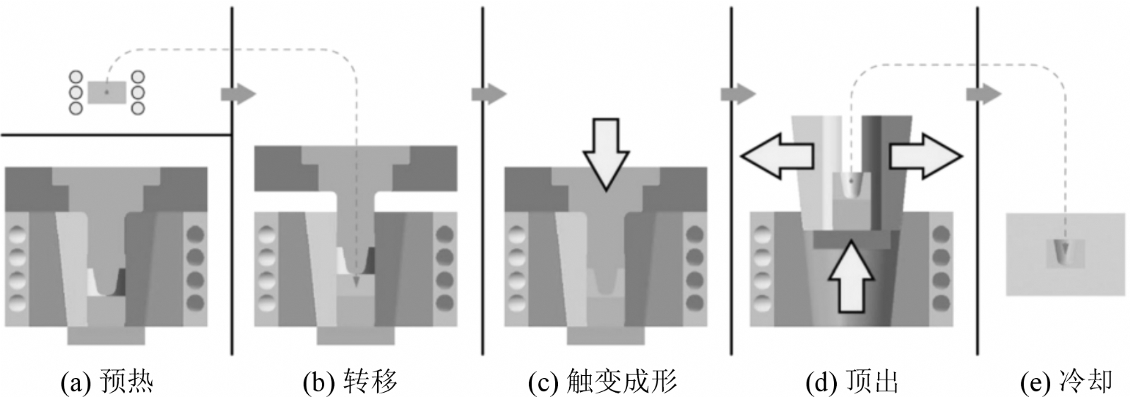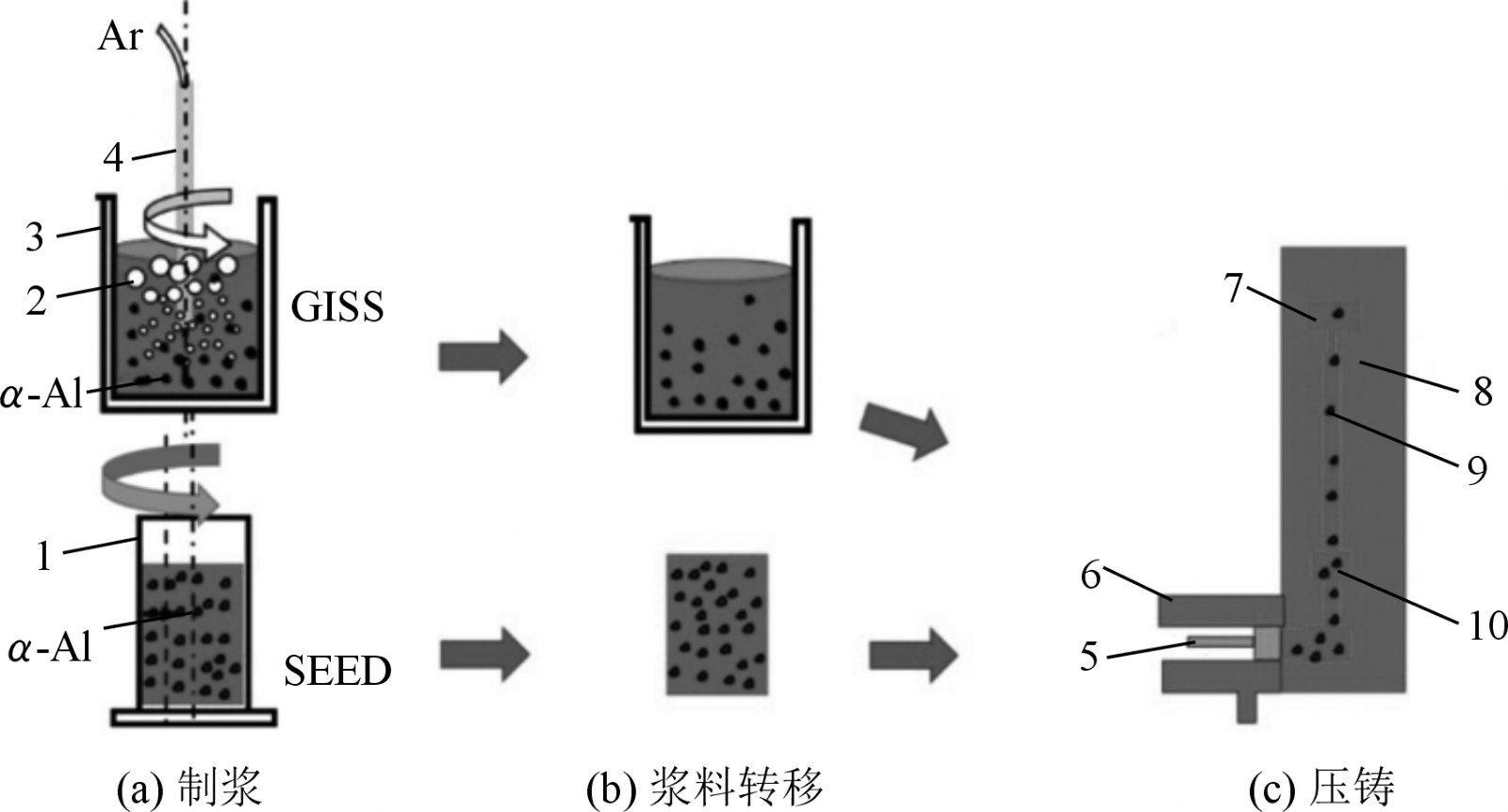 圖8 半固態組織演化過程中機制演變示意圖 3、鎂稀土合金半固態成形工藝研究進展 半固態成形技術在鎂合金領域的應用逐漸增多,特別是在汽車制造和消費電子行業。鎂合金半固態成形工藝包括觸變成形和流變成形,其中流變成形工藝如流變壓鑄(RDC)和流變擠壓鑄造(RSC)能有效解決卷氣問題,適合Mg-RE合金。研究顯示,半固態成形鑄件的微觀組織和力學性能得到改善,且可進行時效處理。國內對鎂稀土合金的半固態成形進行了研究,發現Gd含量變化影響合金的顯微組織和力學性能,而低頻電磁攪拌和超聲振動技術有助于制備高質量的半固態漿料。觸變成形工藝中,液相偏析是常見問題,減小α-Mg顆粒尺寸有助于減輕此問題。注射成形技術在鎂合金制備中受到關注,其工藝流程包括感應加熱、精確控溫和注射成形,適用于新能源汽車和3C電子領域。鎂合金半固態注射成形技術展現出晶粒細化效果,但目前尚未見有關鎂稀土合金的研究報道。隨著材料基因工程技術的發展,有望推動鎂稀土合金在大型復雜結構件領域的應用。