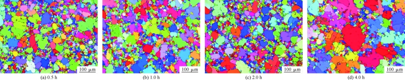 圖2 不同固溶時間下半固態壓鑄Al-Si-Fe-Mg合金的EBSD結果