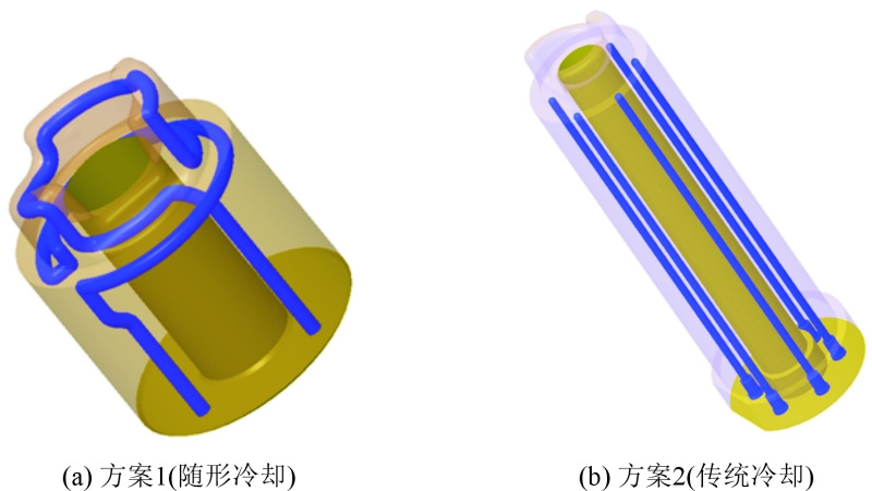 圖4 隨形冷卻鑲件與傳統冷卻鑲件圖