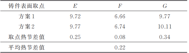 圖6 熱節模擬對比圖 表2 取點熱節對比數據表