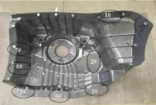 ![]() 圖1:鋁制減震塔結(jié)構(gòu)示意圖 原標題:真空壓鑄鋁合金減震塔缺陷分析及改進 汽車車身結(jié)構(gòu)件如副車架、減震器支座、后蓋框架、A/B柱等為承載受力件,與汽車安全性密切相關(guān)。這類結(jié)構(gòu)件通常具有復雜薄壁、尺寸較大等特征,由于在行駛中要保證汽車可靠的安全性,這些受力結(jié)構(gòu)件要求高的屈服強度及優(yōu)良的伸長率。傳統(tǒng)的汽車結(jié)構(gòu)件大多由多個鋼制件拼接而成,通過沖壓、鍛造、焊接、鉚接等工藝生產(chǎn)。隨著節(jié)能減排的要求越來越高,燃油車和新能源汽車都大力推進輕量化,因此車身結(jié)構(gòu)件的輕量化,即“以鋁代鋼”已成必然趨勢,真空壓鑄工藝技術(shù)和高強韌壓鑄鋁合金的開發(fā)十分關(guān)鍵。 減震塔屬于車身承載結(jié)構(gòu)件,對屈服強度和韌性要求高,且形狀復雜,是以鋁代鋼的典型結(jié)構(gòu)件。目前壓鑄鋁合金減震塔已廣泛應(yīng)用于某些中高端車型。然而,國內(nèi)壓鑄企業(yè)在該方面的研究開發(fā)起步較晚,與大批量穩(wěn)定生產(chǎn)和應(yīng)用還存在一定的距離。 本課題為某主機廠開發(fā)一款新能源汽車用鋁合金減震塔,對首輪試生產(chǎn)得到的減震塔壓鑄件的力學性能較差部位進行缺陷分析,并對其壓鑄成形工藝提出了改進措施。 鑄件首次試制及試驗檢測 減震塔基本尺寸為532 mm×365 mm×299 mm,成品質(zhì)量(增加余量后)為4.043 kg,體積為1.53×106 mm3,投影面積為156 735 mm2,基本壁厚在3 mm左右,分左右件(對稱),其結(jié)構(gòu)示意圖見圖1,可以看出該產(chǎn)品屬于典型的復雜薄壁零部件。為保證要求的減震塔本體取樣壓鑄態(tài)伸長率≥5%,采用真空壓鑄工藝制備,合金采用自主開發(fā)的新型高強韌壓鑄鋁合金。 試制采用壓鑄機型號為IDR3500T,以保證具有足夠的合模力,結(jié)合減震塔的結(jié)構(gòu)特征,確定左、右減震塔按一模兩腔布局設(shè)計,其整體澆注系統(tǒng)效果圖見圖2。主要壓鑄工藝參數(shù):壓室長度為1 250 mm,充滿度為29.64 %,壓鑄時型腔的真空度為9×103Pa以下,達到高真空狀態(tài),壓鑄溫度為680-700 ℃,模溫控制在200 ℃以上。