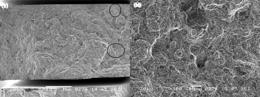 圖5減震塔鑄件不同位置OM形貌.(a)1號位置,(b)(c)3號位置,(d)5號位置,(e)6號位置 壓鑄件中的氣孔主要由壓鑄充型過程鋁液紊流卷氣、壓鑄參數(shù)不當或壓鑄模具設(shè)計不合理導致排氣不良、產(chǎn)品壁厚差過大和鋁液精煉除氣效果差等因素造成。所開發(fā)的減震塔采用真空壓鑄工藝,產(chǎn)品壁厚均勻,因此產(chǎn)生氣孔得原因可能是鋁液中含氣量較大、壓鑄參數(shù)不當或模具澆注系統(tǒng)設(shè)計不合理等。 圖6為不同位置拉伸試樣斷口SEM照片。從圖6a和圖6c看出,3號和5號位置試樣的拉伸斷口均為準解理斷裂,斷口中出現(xiàn)明顯的臺階形態(tài),其他位置的試樣斷口方式與其一致。從圖6b可以看出,高倍組織中存在大量的韌窩和撕裂棱,韌窩的內(nèi)部存在大量的第二相,通過能譜分析可知主要為共晶硅和AlMnFeSi相。對比兩個位置試樣斷口,發(fā)現(xiàn)5號位置試樣拉伸斷口中存在氣孔和夾渣等缺陷(圖6a圓圈內(nèi)所示),在1號位置的試樣斷口中也同時發(fā)現(xiàn)氣孔和夾渣,6號、7號位置試樣斷口中僅出現(xiàn)大量的氣孔;3號位置的試樣斷口中很少看到明顯的鑄造缺陷,2號和4號位置的試樣斷口與3號位置的組織一致,這導致1號、5號、6號、7號這些位置伸長率遠低于其他位置。通過多次試樣斷口觀察,發(fā)現(xiàn)6號、7號位置試樣斷口中氣孔的尺寸和數(shù)量隨機性較大,從而導致這兩個位置的伸長率波動遠高于其他部位。 根據(jù)鑄件力學性能檢測及微觀組織觀察,結(jié)合減震塔本身設(shè)計,可知力學性能較差的區(qū)域存在的問題在于:1號位置處于鑄件的遠澆口區(qū)域,鋁液最后流動到該部位,熔體溫度低于其他部位,且隨著鋁液流動,型腔內(nèi)的殘存氣體被壓入此處,導致遠澆口處的氣孔尺寸和數(shù)量明顯高于其他部位,且鋁液中的夾渣最易存在于最后充型區(qū)域;5號位置雖處于近澆口區(qū)域,然而該區(qū)域的進澆口較窄,此處所取的試樣一半處于澆口以外,該處形成鋁液充型時的流動死角,導致產(chǎn)生的氣體和夾渣無法排出,使該處試樣的伸長率遠低于正常值;6號和7號位置處于鋁液流動方向急轉(zhuǎn)區(qū)域,該區(qū)域充型方向改變角度幾乎為直角,且由于5號位置的澆口較窄,使得無充足鋁液流到該處,從而導致這些位置充型困難,易形成卷氣。