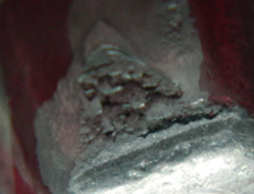 圖16:濾波器腔體的P-Q圖 通過圖16可知,P-Q線的模具線和設備線交點在所需要的壓鑄工藝窗口內部中間區域,說明此模具設計方案合理。 經圖16得知實際沖頭的壓射速度可在4.3~5.0m/s區間視鑄件實際情況進行調整。在第一次試模時,將實際的壓射速度調整為4.5m/s,鑄件成型良好,達到了一次試模成型成功的效果。并經壓鑄、機加、氧化、噴粉、電鍍工序批量生產后,未發現因鑄件成型缺陷而引起的產品報廢。 在其他工藝參數及條件不變前提下,將壓鑄機實際的壓射速度調整為3.5m/s,鑄件遠澆端內腔筋位出現冷隔等不良,見圖17。圖18為實際壓射速度為3.5m/s的P-Q圖,設備線和模具線的交點在壓鑄工藝窗口外部位置,工藝參數不合理。