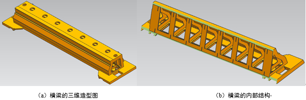 圖1:橫梁三維圖 橫梁材質為ZL114A,化學成分見表1。體收縮率為 4.0%~4.5%。要求采用低壓鑄造,外型面采用鋼制模具。