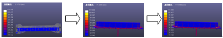 圖12:鑄件缺陷結果分析 為使鑄件的凝固時間縮短,防止鑄造缺陷,故鑄型的不同位置增設冷卻水道。橫梁頂部最先凝固,得不到補縮,容易產生縮孔,所以為了防止縮孔,需要加速輪緣部分的冷卻速度,在壁較厚的階梯處,也容易產生缺陷,也需要加快冷卻速度以防止鑄造缺陷,為此設計的冷卻水道的位置圖見圖16。