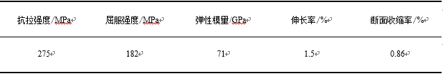 表1:鑄造鋁合金AlSi9Cu3的化學成分 % 按照GB/T228-2002,通過Zwick電子萬能材料試驗機對試樣進行靜態拉伸試驗,獲得了材料的基本力學性能(見表2)。