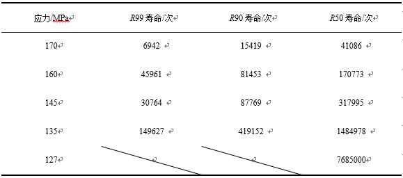 由于疲勞數據具有很大的分散性,在相同的應力水平下,試樣的疲勞壽命與存活率P密切相關。因此在進行結構設計時,必須知道材料在一定可靠度下的疲勞壽命應力關系,即使用材料的P-S-N曲線。一般認為疲勞壽命符合對數正態分布,即