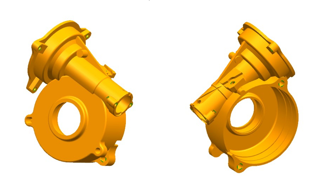 圖13:實際生產(chǎn)鑄件 3、結(jié)論 根據(jù)水泵殼體結(jié)構(gòu)要求,設(shè)計合理壓鑄方案,將壓鑄工藝與數(shù)值模擬技術(shù)相結(jié)合,利用FLOW-3D軟件對壓鑄工藝進行數(shù)值模擬,分析卷氣及缺陷產(chǎn)生原因并進行工藝優(yōu)化,增加多股內(nèi)澆口,增設(shè)溢流槽和排氣槽,模擬顯示無缺陷。進行生產(chǎn)驗證后得到符合實際生產(chǎn)鑄件。 |