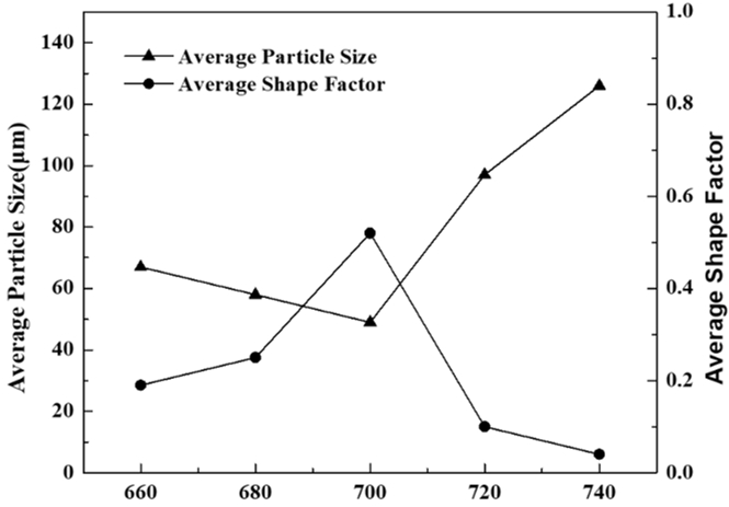 圖6:澆注溫度對Al-5Zn-2Mg-1Cu-0.2Sc合金漿料初生α-Al的影響 2.3 流變擠壓鑄造合金 2.3.1 微觀組織 圖7和圖8分別為不同澆注溫度下流變擠壓鑄造Al-5Zn-2Mg-1Cu-0.2Sc合金的金相與SEM照片。可以看出,鑄態組織主要由初生α-Al相與第二相組成,初生α-Al晶粒呈近球形或樹枝狀。隨著澆注溫度的降低,漿料中的初生α-Al枝晶逐漸減少,近球形初生α-Al相逐漸增加,晶粒尺寸減小,平均圓整度增加。另一方面,受澆注溫度的影響,第二相在晶界附近呈團聚狀分布。隨著澆注溫度降低至700 ℃,第二相的分布越來越均勻,尺寸逐漸減小。 當澆注溫度為740 ℃和760 ℃時,α-Al相以枝晶狀為主,粗大的第二相在晶界附近呈團聚狀析出,分布不均勻,對合金的性能不利。當澆注溫度降低至720 ℃和710 ℃時,枝晶狀晶粒數量減少,近等軸狀晶粒增加,第二相仍存在少量偏聚。當澆注溫度為700 ℃時,α-Al晶粒大部分為近球狀,晶粒尺寸相差不大,第二相分布均勻,平均晶粒尺寸約為43 μm。