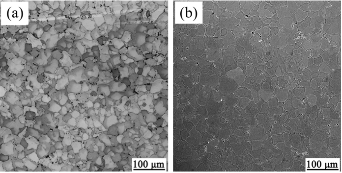 ![]() 原標題:流變擠壓鑄造Al-5Zn-2Mg-1Cu-0.2Sc合金組織與力學性能研究 摘要:采用流變擠壓鑄造技術制備了Al-5Zn-2Mg-1Cu-0.2Sc合金,通過拉伸試驗、SEM和TEM等方法研究了澆注溫度對半固態漿料、流變擠壓鑄造合金組織和力學性能的影響。結果表明,隨著澆注溫度的降低,半固態漿料和流變擠壓鑄造合金初生α-Al相形貌逐漸轉變為近球形,在晶界附近析出的第二相分布越來越均勻,平均晶粒尺寸減小,圓整度增加。當澆注溫度為700 ℃時,半固態漿料初生相尺寸最小,約為35 μm,平均形狀因子約為0.49,流變擠壓鑄造后合金平均晶粒尺寸約為43 μm。流變擠壓鑄造合金力學性能隨著澆注溫度的降低逐漸增加。合金經過470 ℃×10 h+500 ℃×2 h雙級固溶后,大部分第二相溶于基體。120 ℃×24 h時效處理后,合金的屈服強度達539 MPa,抗拉強度達612 MPa,伸長率達11%。 Al-Zn-Mg-Cu系(7xxx系)高強鋁合金具有比強度高、塑性和耐腐蝕性好、易于機械加工等特點,廣泛應用于航空航天、交通運輸、機電儀表等領域。7xxx系鋁合金是一類典型的變形鋁合金,在實際生產中通常采用擠壓、軋制和鍛造等塑性變形方法成形。由于合金元素含量高、凝固溫度范圍寬,鑄造過程中易出現熱裂、偏析和組織粗大等缺陷,難以通過傳統液態成形制備復雜結構零部件,這嚴重限制了該類高性能鋁合金的應用范圍。隨著我國新能源汽車的發展,對結構件輕量化、高性能、高可靠性的需求越來越迫切,采用7xxx系高強鋁合金“以鋁代鋼”制備底盤與動力系統等關鍵復雜結構件是實現汽車輕量化的重要途徑,開發7xxx系鋁合金“以鑄代鍛”的新型液態/半固態成形技術也越來越受到國內外的關注。 流變擠壓鑄造技術具有成形溫度低、凝固收縮小、組織致密度高、鑄造缺陷少等優勢,可制備形狀復雜、內部質量和尺寸精度要求高的金屬零件,該技術在7xxx系高強鋁合金上的應用有望解決其鑄造成形性差的難題,實現“以鑄代鍛”的目標。近年來,國內外對于7xxx系鋁合金的流變擠壓鑄造研究主要集中于熔體的細化與均勻化處理、半固態漿料的制備方法及工藝參數、合金強化機制、流變鑄造工藝與數值模擬等方面。目前,相關研究主要通過改變制漿方法、添加復合細化劑制備高熔體質量漿料,研究成形壓力、保壓時間等工藝參數對7xxx系鋁合金組織的影響,但流變成形7xxx系合金的力學性能普遍不如鍛造成形和觸變成形。另一方面,在7xxx系鋁合金中復合添加Mn、Ti、Cr、Sc、Zr等元素,雖然可以提高流變成形合金強度,但其塑性相對較低,限制了其工業化應用。 本研究從Sc微合金化、流變成形溫度控制和熱處理3方面出發,提高流變擠壓鑄造7xxx系合金的強韌性。采用滾筒機械攪拌裝置制備Al-5Zn-2Mg-1Cu-0.2Sc合金半固態漿料,研究澆注溫度對合金半固態漿料、流變擠壓鑄造和熱處理組織性能的影響,旨在為7xxx系鋁合金流變成形技術的開發與應用奠定理論和實踐基礎。 1、試驗材料與方法 將鋁銅、鋁鈧、鋁錳、鋁鉻、鋁鈦硼中間合金,純鋅錠、純鎂錠等加入井式電阻爐進行熔煉、精煉制備Al-5Zn-2Mg-1Cu-0.2Sc合金。通過立式四柱型油壓機(YC27-63 800KN)對合金進行流變擠壓鑄造,模具預熱溫度為250 ℃,壓力為120 MPa,保壓時間為30 s,澆注溫度為700~740 ℃。 采用機械攪拌設備制備半固態漿料,包括機械攪拌系統和超敏溫度測量系統,見圖1。機械攪拌系統可調節筒體轉速、預熱溫度和傾角,超敏測溫系統可以對流出桶外的漿料快速測溫。試驗參數如下:機械攪拌圓筒預熱溫度為250 ℃,轉速為60 r/min,傾角為30°,制漿澆注溫度為700~760 ℃,漿料通過銅模冷卻。