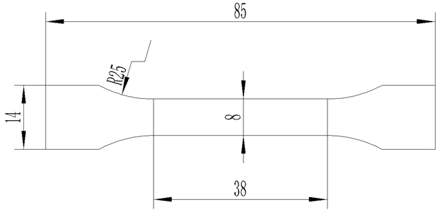 圖2:拉伸試棒尺寸示意圖 為了保證試棒和壓鑄件熱處理工藝的一致性,需要一起放在同一熱處理工裝上,在熱處理連續爐進行熱處理,使用萬能拉伸試驗機進行力學性能測試。力學性能要求見表1。