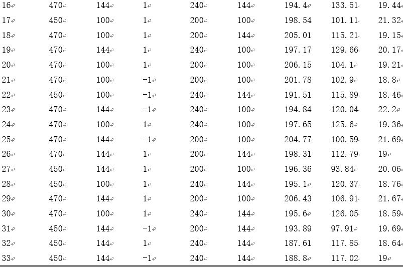 表3:全因子試驗設計 為了減少產品和熱處理工裝位置對試驗結果的影響,直接使用同一批次的A型試棒進行不同熱處理試驗參數組合進行試驗,萬能拉伸試驗機測出的力學性能結果見表4。