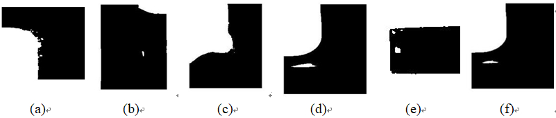 圖5:汽車鋁合金壓鑄件X射線圖像 這些缺陷包括欠鑄、變形、氣孔等等。 3.2 缺陷部位圖像處理之后得到的圖像 經(jīng)過缺陷區(qū)域的提取之后,得到主體是缺陷部分的圖像,采用圖像預(yù)處理方法以及圖像閾值分割的方法,對(duì)圖像進(jìn)行處理。第一步是使用高斯濾波對(duì)圖像處理,然后通過線性增強(qiáng),最后通過Otsu閾值分割方法對(duì)圖像進(jìn)行處理。圖像預(yù)處理后的結(jié)果見圖6。