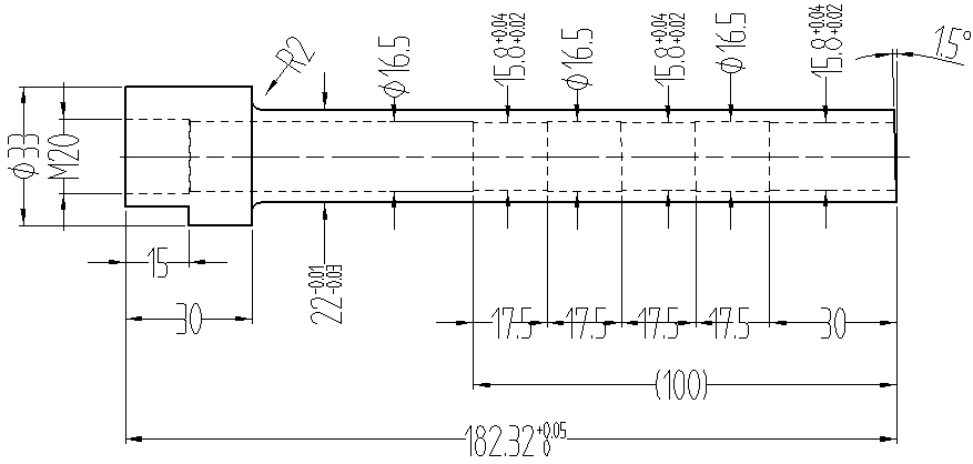 圖7 抽芯針受力數學模型 多點進澆方式,鋁液溫度為660 ℃,模具溫度為150 ℃,噴涂時間為17 s,冷卻時間為11 s對抽芯針變形和偏擺影響不明顯。抽芯針采用T型連接、定位塊定位和采用高壓點冷冷卻,研發出長抽芯針與針套配合段分段式結構,減少抽芯針與針套磨損,減少抽芯針變形和偏擺的可能性。W360材料抽芯針強度可滿足此抽芯針實際所需承受的力,減少抽芯針變形和偏擺的可能性。 4、結語 按照以上壓鑄生產工藝、模具結構、采用W360材料抽芯針,我司變速箱側蓋高壓油道長抽芯針未出現變形和偏擺導致油道孔壁厚問題。