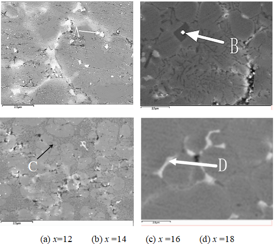 圖8 Al-xZn-8Si-2Cu合金SEM形貌