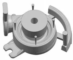![]() 原標題:壓殼鑄件的鑄造工藝設計及試生產 摘要:壓殼鑄件應用于許多流體工程領域中。根據壓殼鑄件的結構特點,首先基于其CAD圖利用UG軟件對該鑄件進行了三維建模,然后設計其鑄造工藝方案,并利用數值模擬軟件ProCAST進行了工藝方案優(yōu)化,分析了鑄件的充型過程、凝固過程及縮孔、縮松缺陷分布等,最終確定了壓殼鑄件的最佳鑄造工藝方案。再采用樹脂砂利用數字化無模精密鑄造成形機加工出砂型及砂芯,然后合型,熔煉金屬液,進行實際澆注,對壓殼鑄件進行了試生產。所獲得的鑄件完全符合圖紙的技術要求,為該壓殼鑄件采用重力鑄造方法進行下一步中試生產奠定了工藝基礎,同時也為其他壓殼類鑄件的鑄造工藝設計提供了一定參考。 壓殼鑄件在實際工程領域中有著廣泛應用,它的主要作用是通過將流體吸入其內部,將流體的動能轉化為壓力,從而實現其整體的壓力平衡,因此壓殼鑄件需要具有一定的強度,并且在使用前要進行水壓強度實驗和氣壓滲漏性實驗。由于壓殼鑄件內部中空,因此需要用砂芯來進行成形。數字化無模精密鑄造成形技術無需制造模具或模樣,具有生產周期短、工藝試制成本低、數字化程度高、綠色化程度好等特點,特別適合于鑄件的工藝開發(fā)和生產試制。文中利用CAD/CAE/CAM技術以及數字化無模精密鑄造成形技術,進行了鋁合金壓殼鑄件的三維造型、鑄造工藝設計及優(yōu)化,最終進行了生產試制。 1.鑄件的結構特點及要求 該壓殼鑄件的基本尺寸為157.8 mm×151.1 mm×64.6 mm,材質為AlSi7Mg0.3,重量為0.91 kg,鑄件的三維模型及主要尺寸如圖1所示,屬于小型復雜件。其技術要求包括:未注鑄造公差應符合BS6615/ISO 8062及工程標準E3-20,缺陷需符合工程規(guī)范E4-05-006,鑄件需符合材料規(guī)范中的相關質量要求。該鑄件的最小壁厚為4 mm,多個面要求不允許存在飛邊、毛刺和凸起,因此需要著重考慮好澆注位置和分型面;此外,該鑄件最大截面不在同一平面上,因此要合理設計好分型面。