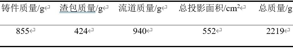 表1 AlSi12Cu1Fe鋁合金化學(xué)成分 wb/% 2.壓鑄工藝設(shè)計(jì) 2.1 澆排系統(tǒng)設(shè)計(jì) 澆排系統(tǒng)能保證鑄件充填時(shí)各區(qū)域合理配置,排氣順暢,盡可能減少氣體的卷入。澆注系統(tǒng)采用多段流道進(jìn)料,設(shè)置于鑄件長(zhǎng)邊位置,以減少鋁液填充時(shí)間,縮短鋁液流程,避免壓鑄時(shí)卷氣、冷隔、熔接痕等缺陷。該鑄件壁厚為5 mm,內(nèi)澆口速度為28~35 m/s,內(nèi)澆口截面積為492 mm2,取直徑為Ф80 mm的活塞,內(nèi)澆口截面積與活塞截面積為1:10.21。根據(jù)伯努利原理可得,當(dāng)內(nèi)澆口流速為35 m/s時(shí),活塞速度為2.7 m/s。 排溢系統(tǒng)采用渣包與大流量排氣,通過(guò)渣包后面排氣板的延伸,提高排氣面積,從而增加排氣量,渣包有助于將壓鑄時(shí)混進(jìn)鋁液中的脫模劑、潤(rùn)滑顆粒、與空氣接觸的氧化鋁液、流動(dòng)前端所卷入的氣孔從型腔排出,存放于渣包內(nèi),保證鑄件的品質(zhì)。澆排系統(tǒng)設(shè)計(jì)見(jiàn)圖2,表2為澆排系統(tǒng)工藝參數(shù)。