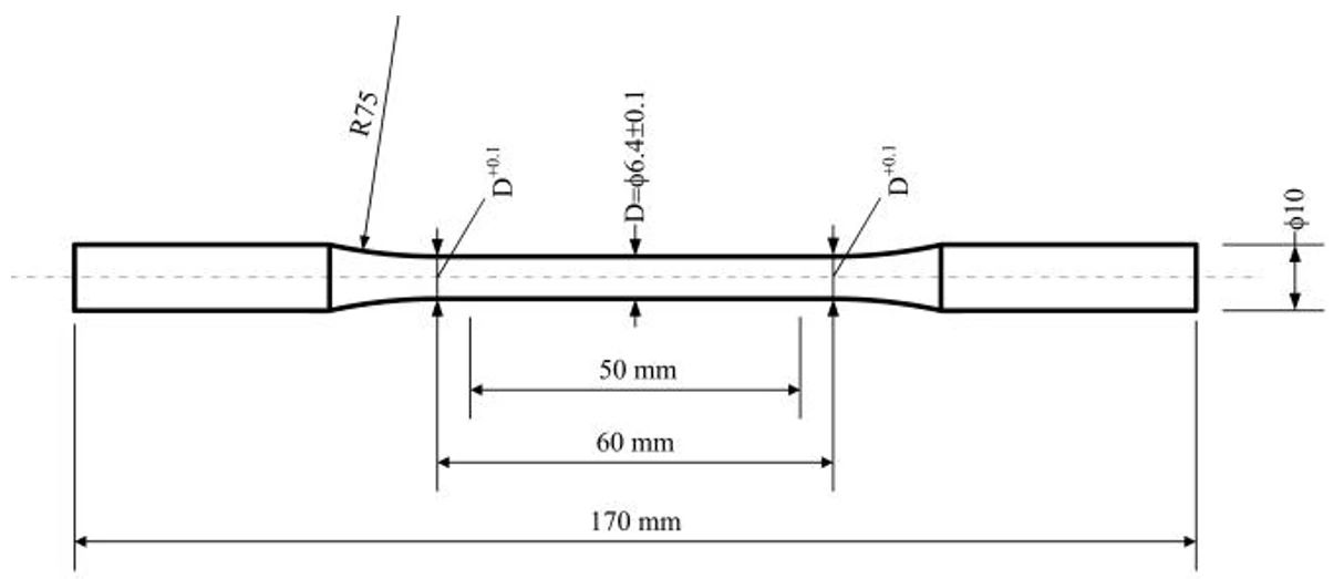 表1 新型壓鑄合金的化學(xué)成分(%) 1.2 壓鑄試樣的制備 壓鑄試樣參照標(biāo)準(zhǔn)設(shè)計(jì),試樣見(jiàn)圖1,試樣尺寸見(jiàn)圖2,直徑為6.4 mm,標(biāo)距為50 mm,總長(zhǎng)為170 mm。采用臥式冷室壓鑄機(jī),沖頭直徑為40 mm。壓鑄工藝參數(shù):澆注溫度為660~670 ℃,模具溫度為150 ℃。